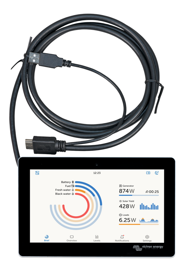 The GX Touch is a companion to the Cerbo GX. This communication-centre allows you to always have perfect control over your system from wherever you are and maximises its performance. Simply connect through our Victron Remote Management (VRM) portal, or access directly, using the GX Touch, an MFD or our VictronConnect App thanks to its built-in WiFi Access Point. This latest addition to the GX-range combines all the best of connectivity, redefining smart power solutions in every way.