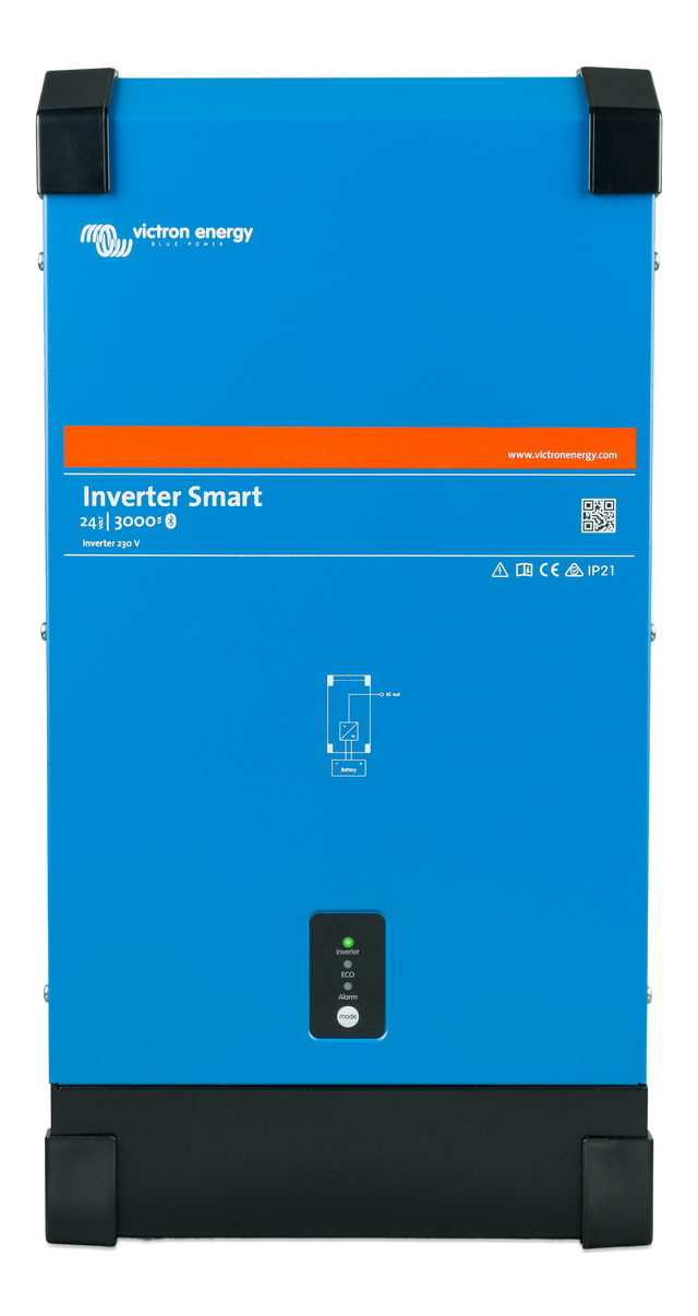 The Phoenix Inverter 24/2000 Smart is an efficient and reliable inverter. Built on our proven and field tested Phoenix inverter platform, it now comes with a new slimmer design and full metal casing. Models are available in 1600VA, 2000VA, 3000VA and 5000VA for 12, 24 or 48V systems.