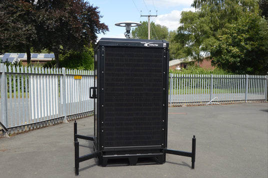 An off-grid power source in a secure, compact box with an adaptive modular design. Deployable anywhere, the PowerBox2 has up to 30kWh battery storage to power lighting, CCTV, telecommunications, drones, and more.